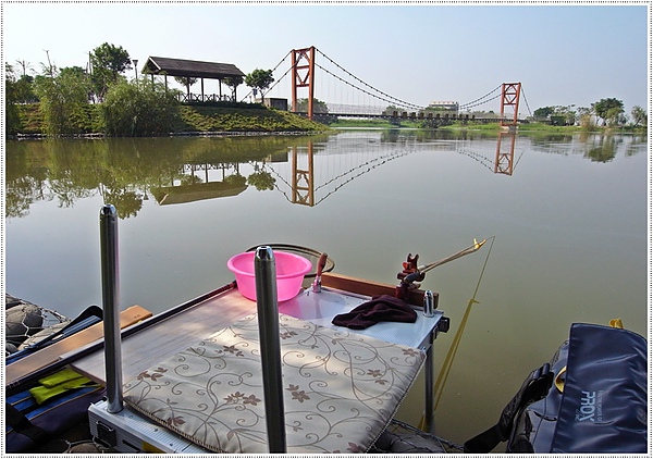 今日釣位左邊,也是此地地標處...吊橋,且是人車通行的橋喔!! 我看使用壽命應該也不長了啦!~~