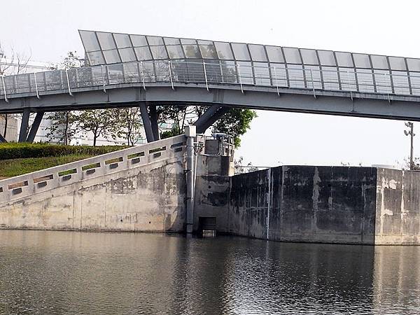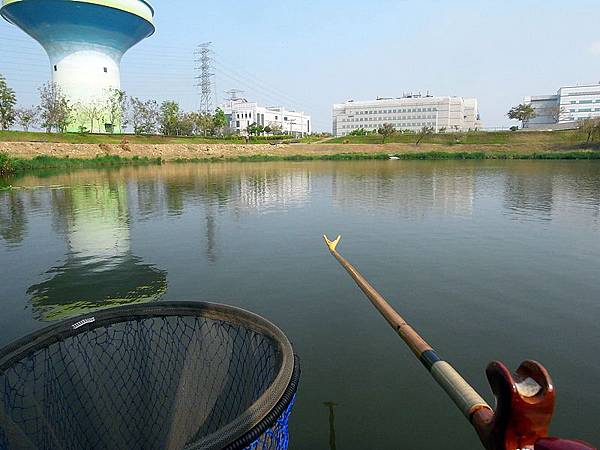 途中覺得浮標站立深度不對,低頭看一下水位,咦?! 怎麼突然下降了,原來是在放水