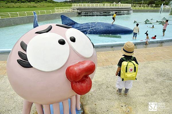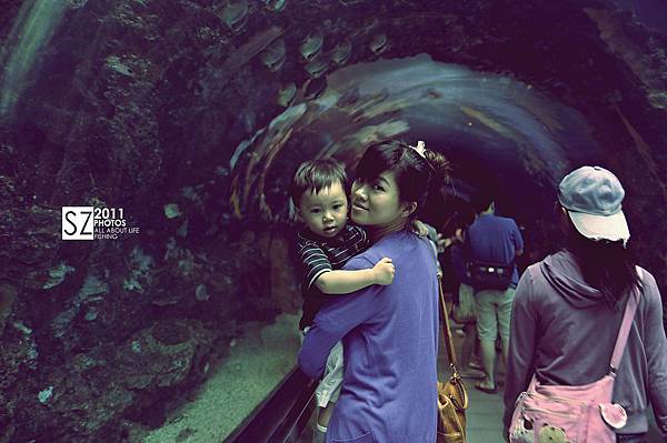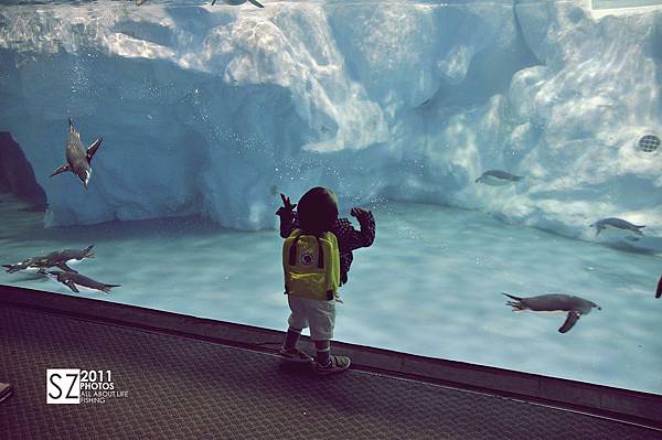 海生館的入口水池(算大洋池嗎?!)有著一家人在戲水,看來他應該很想下去together...