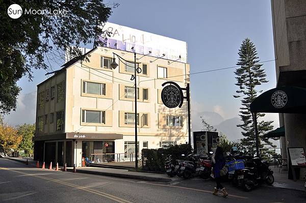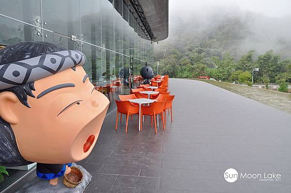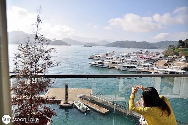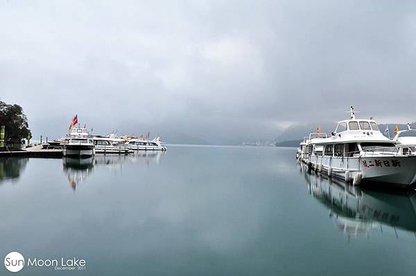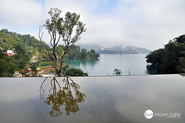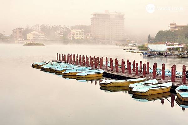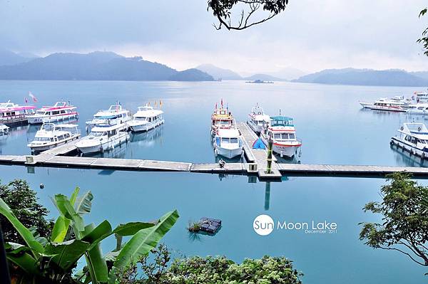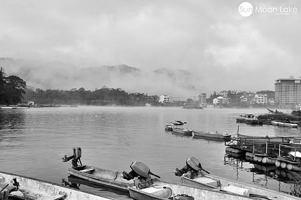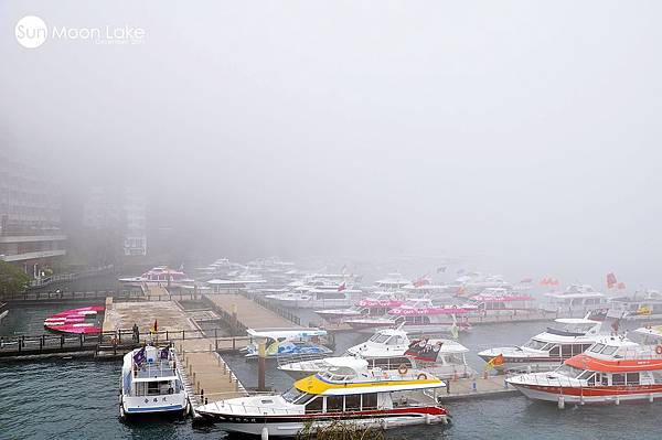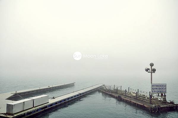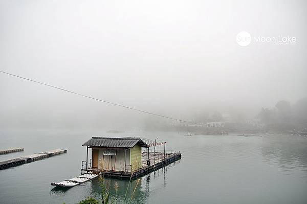 往前再走,來到了梅荷園,雖然天冷,但不見任何梅花;從這望去的水社碼頭也被霧氣包圍